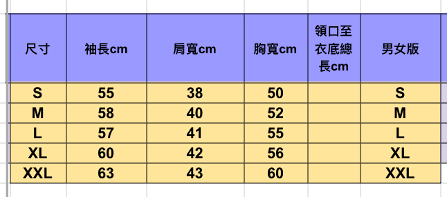 * 您也可以直接告知我們您的: 上半身身長/肩寬/胸寬/手臂長(肩至手腕)尺寸/喜歡顏色, 讓我們為您推薦喲!